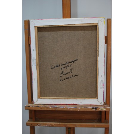 Lienzo extendido sobre bastidor de madera, pintado a mano con tecnicas acrílicas de medidas 46 c 55 2 cm.