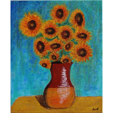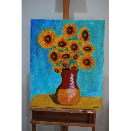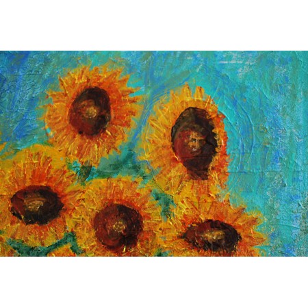 En esta obra, he utilizado la técnica acrílica con relieve para dar vida a un conjunto vibrante de girasoles, capturados en un estilo que navega entre lo figurativo y lo semiabstracto. Cada trazo y color busca transmitir la energía y vitalidad de estas flores, simbolizando la resistencia y la alegría. Al integrar este cuadro en tu hogar, espero aportar un toque de calidez y un constante recordatorio del rejuvenecimiento que trae consigo cada nuevo día.