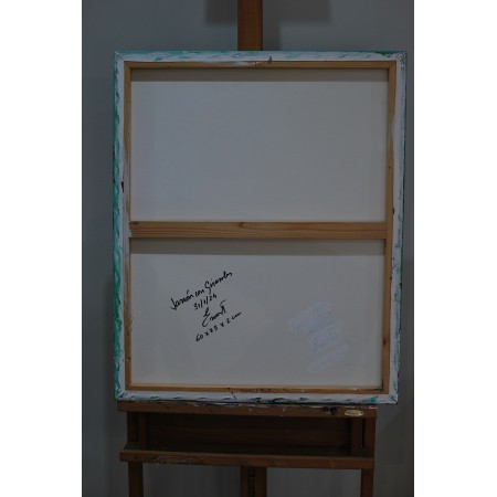 Lienzo extendido sobre bastidor de madera, pintado a mano con tecnicas acrílicas de medidas 60 x 73 x 2 cm.