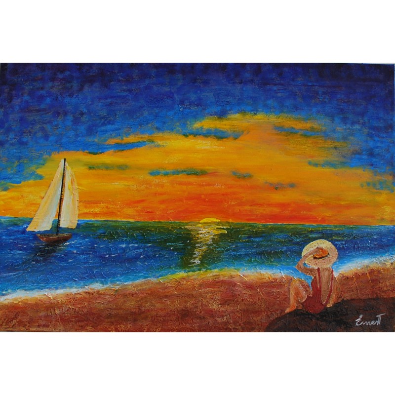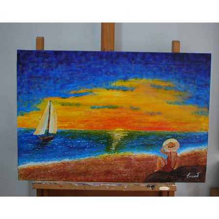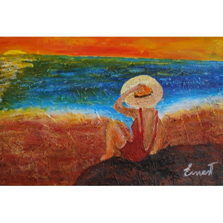 En esta obra, he plasmado el empoderamiento y la serenidad que nos ofrece la inmensidad del mar y la belleza de un atardecer. Utilicé acrílicos para capturar tanto la vibrante explosión de colores en el cielo como la sutileza del mar calmo, creando una atmósfera que invita a la reflexión y la tranquilidad. Mi intención es ofrecer un refugio visual donde uno pueda sentirse reconectado con la naturaleza y consigo mismo, infundiendo paz y armonía al espacio donde se exhiba.