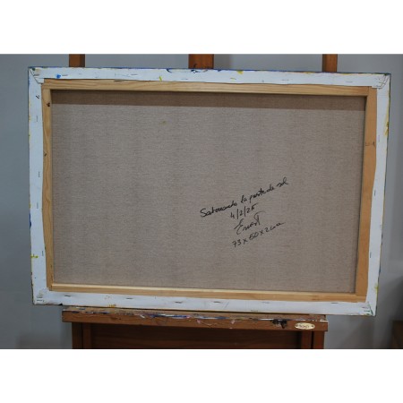 Lienzo extendido sobre bastidor de madera, pintado a mano con tecnicas acrílicas y de medidas 73,50,2 cm