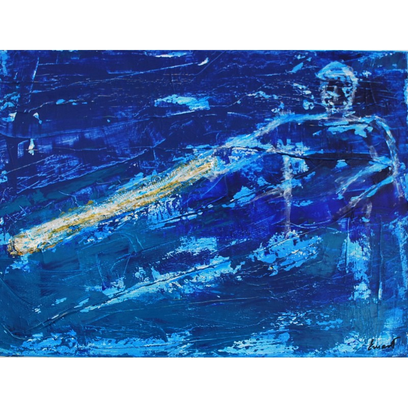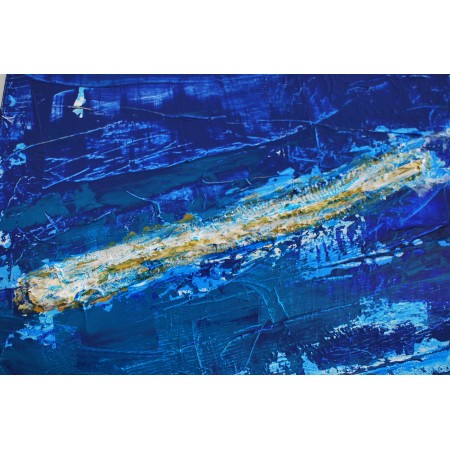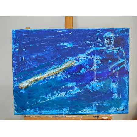 En esta obra, he fusionado técnicas de acrílico, collage y grabado en relieve para...