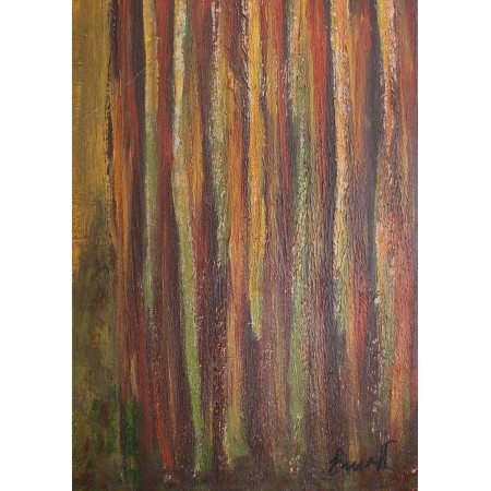 Aquí expreso una obra densa y onírica, con una carga de subconciente donde fusiono los conceptos del mito de la vida y crecimiento, evocando un viaje al interior a través de este lienzo, su fuerza reside entre lo consciente y lo imaginable, que a puede llegar a ser profundamente sugerente.