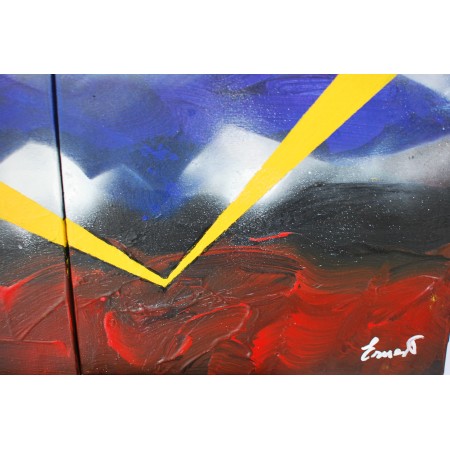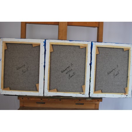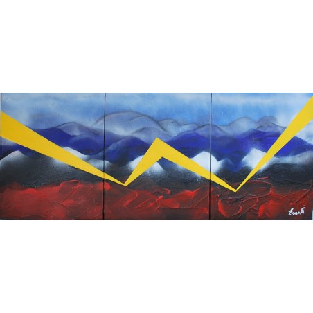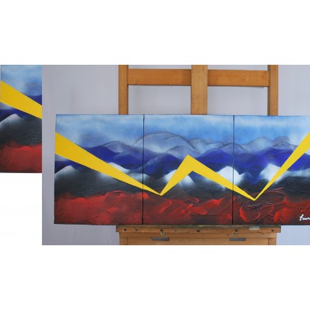 Este es un tríptico acrílico, pintado sobre lienzo estirado, sobre marco de madera, está pintado y firmado a mano. Es un ejemplar único, tiene una tamaño de 100 x 41 x 2 cm.y pesa 1 Kg.