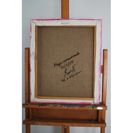 Lienzo extendido sobre marco de madera, pintado a mano con tecnicas acrílicas de medidas 81 x...