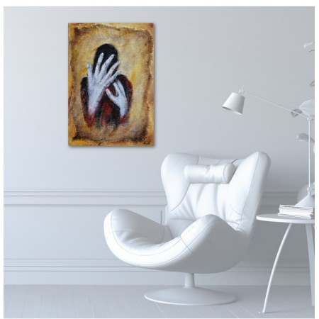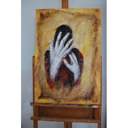 En esta obra, fusioné la acrílica con la impresión en relieve y el dorado para crear una pieza...