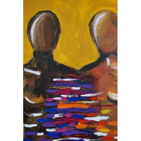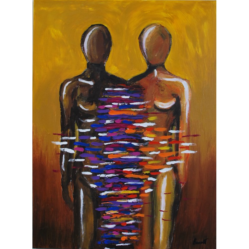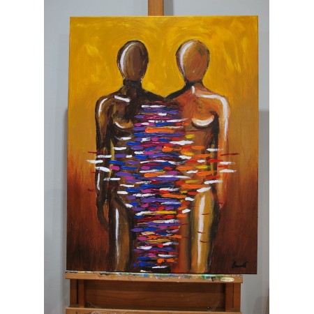 Con esta obra simbolizo la fusión de dos almas en un abrazo íntimo. Los abrazos de energías envuelven a la pareja, representando un campo de energías positivas que concentra su amaor incondicional y su conexión espiritual profunda. Es la esencia de la unidad.