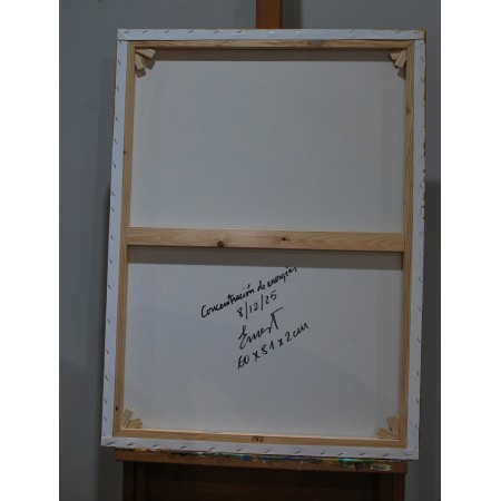 El lienzo está estirado sobre un bastidor de madera de 4 cm. de grosor.
