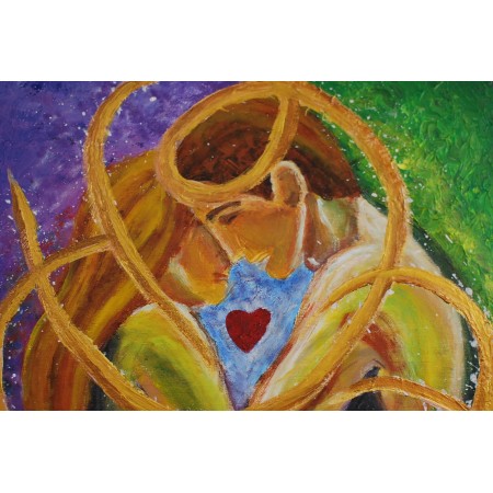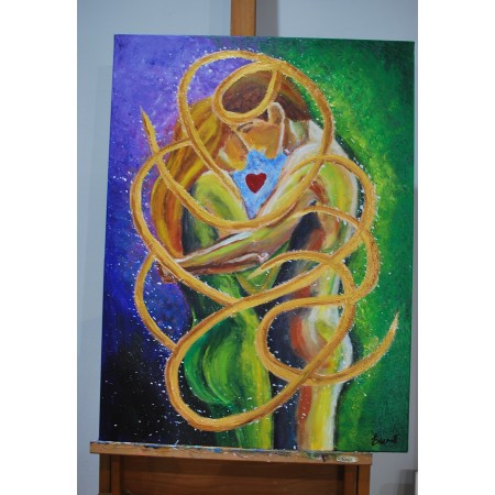 En esta obra, utilizo la técnica del acrílico y la impresión en relieve para capturar la...
