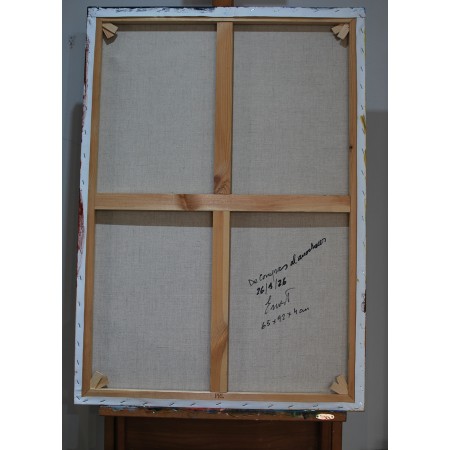 Lienzo extendido sobre marco de madera, pintado a mano con tecnicas acrílicas de medidas 82 x...