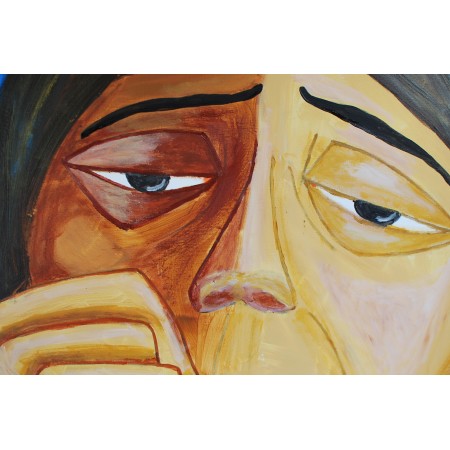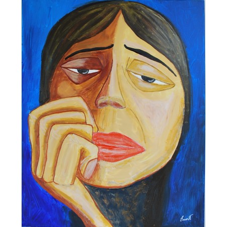 En esta obra, expresé profundamente los estados emotivos de introspección y reflexión. Usé acrílicos para capturar la intensidad y la vulnerabilidad del pensamiento humano, jugando con los estilos figurativo y semiabstracto. La figura central, captada en un momento de profunda contemplación contra un vívido fondo azul, añade un dinamismo que energiza cualquier espacio. Esta pintura no solo decora, sino que invita a la reflexión y al diálogo interior.