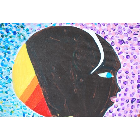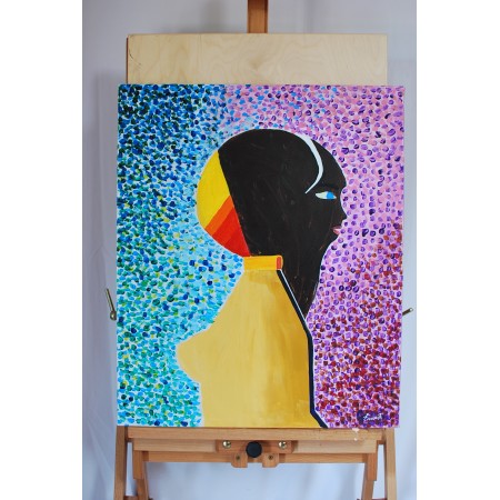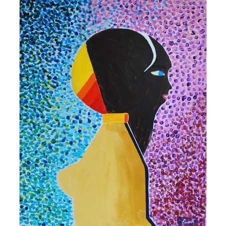 En esta obra, fusioné la acrílica con la impresión en relieve y el dorado para crear una pieza...