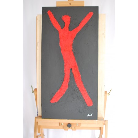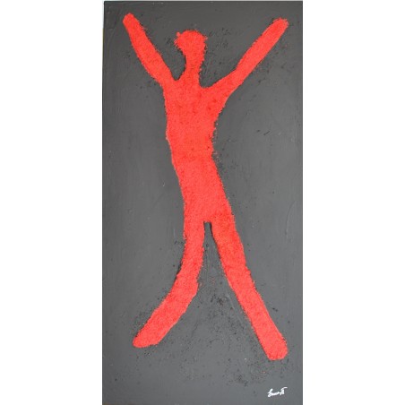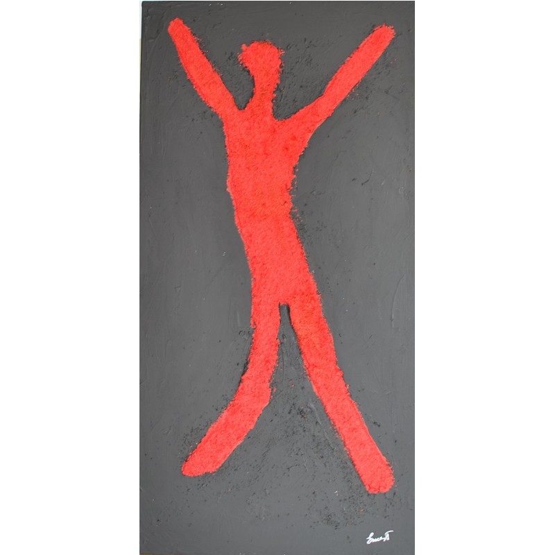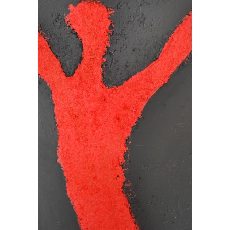 Esta obra representa la vibrante lucha y el triunfo del espíritu humano. Utilicé acrílico y arena con técnicas de impresión en relieve para capturar el movimiento y la energía explosiva. La figura abstracta y simbólica, resaltada en rojo intenso contra un fondo gris oscuro, grita libertad y resistencia. Es una pieza que inyectará pasión y un fuerte sentido de vitalidad a cualquier espacio, evocando conversaciones y reflexiones profundas sobre la resistencia humana y el poder personal.