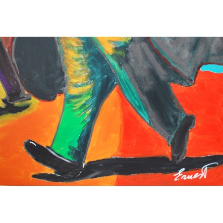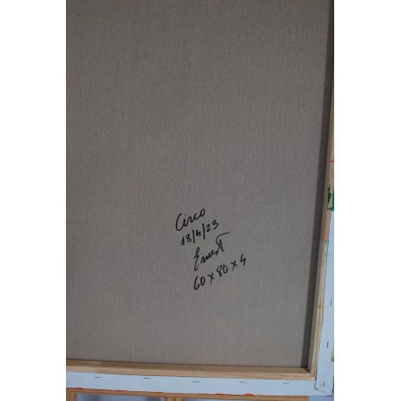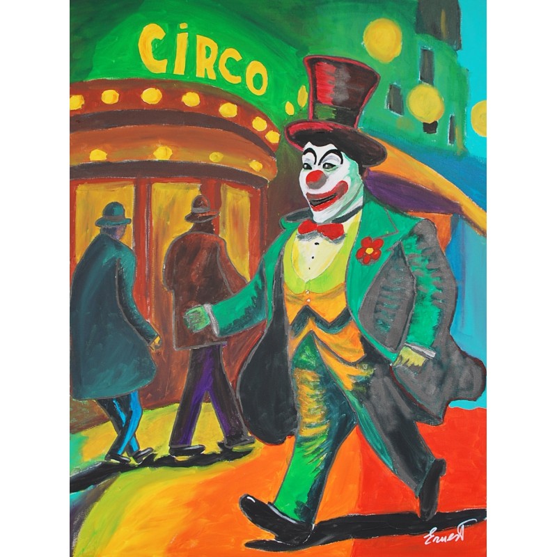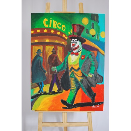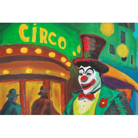 En esta obra, he querido capturar la vibrante energía y el colorido del circo. Utilicé acrílicos para plasmar la audacia y el entusiasmo del ambiente, influido por el fauvismo y mezclado con un estilo semiabstracto. El payaso, central en la composición, representa la alegría y la nostálgica magia que rodea al mundo circense. Cada trazo revela una celebración de la vida y del espectáculo, invitando a quien lo observa a sumergirse en un mundo donde el color y la forma rompen con la cotidianidad.