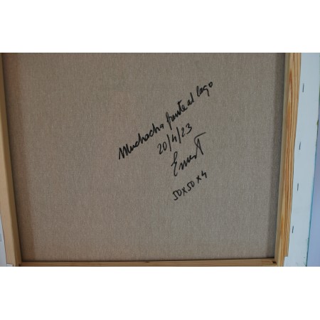 Lienzo extendido sobre marco de madera, pintado a mano con tecnicas acrílicas de medidas 80 x...
