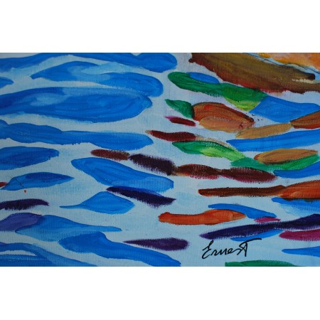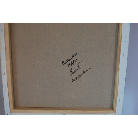 Lienzo extendido sobre marco de madera, pintado a mano con tecnicas acrílicas de medidas 120 x...