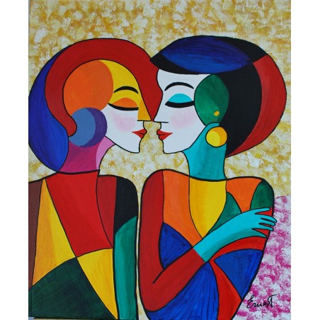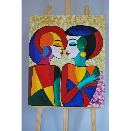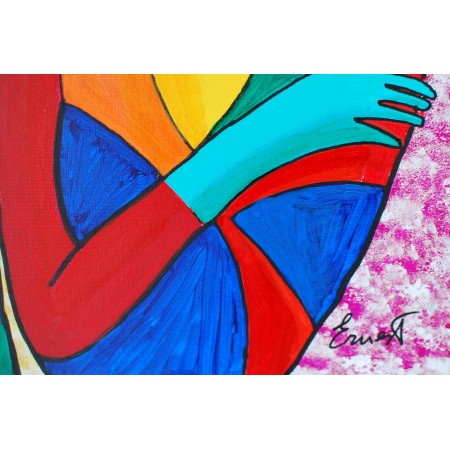En esta obra, he canalizado la intensidad de las emociones y la conexión humana a través de vibrantes bloques de color y formas abstractas. Con acrílicos, capturo la esencia del afecto y la comprensión mutua entre dos figuras, explorando cómo los colores y las formas interactúan para narrar una historia de cercanía y empatía. Esta pieza aportará una energía de amor y armonía a cualquier hogar, celebrando la belleza de las relaciones humanas profundas.